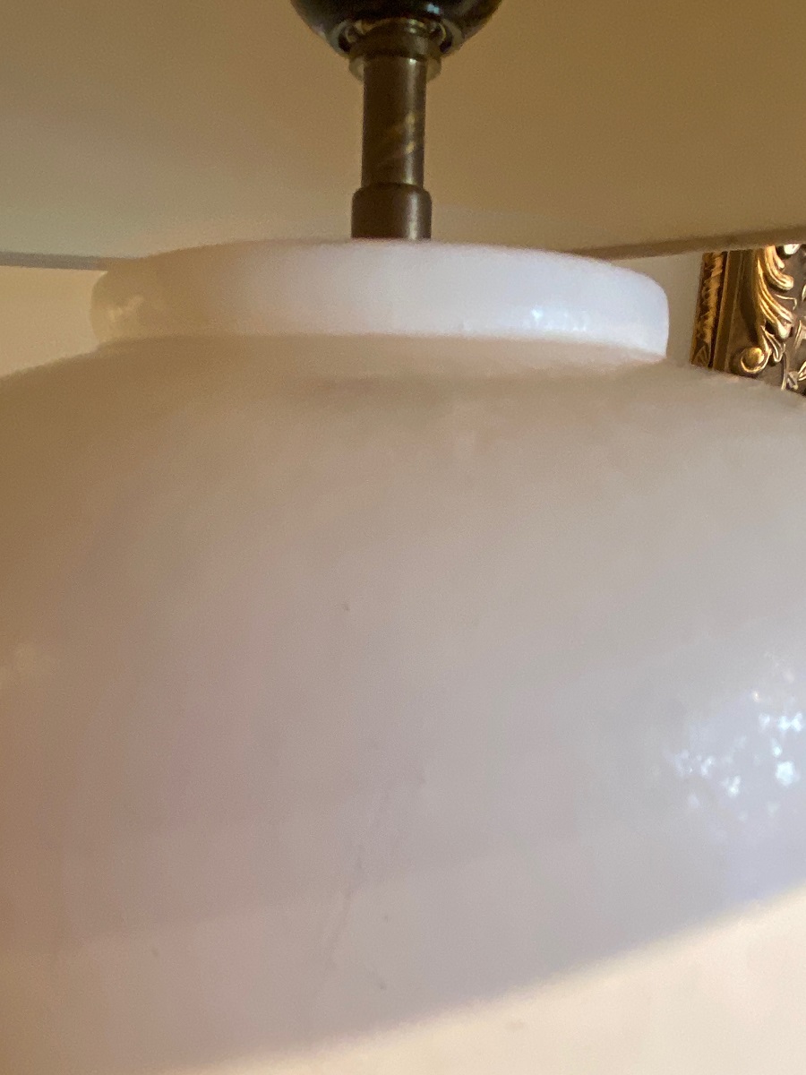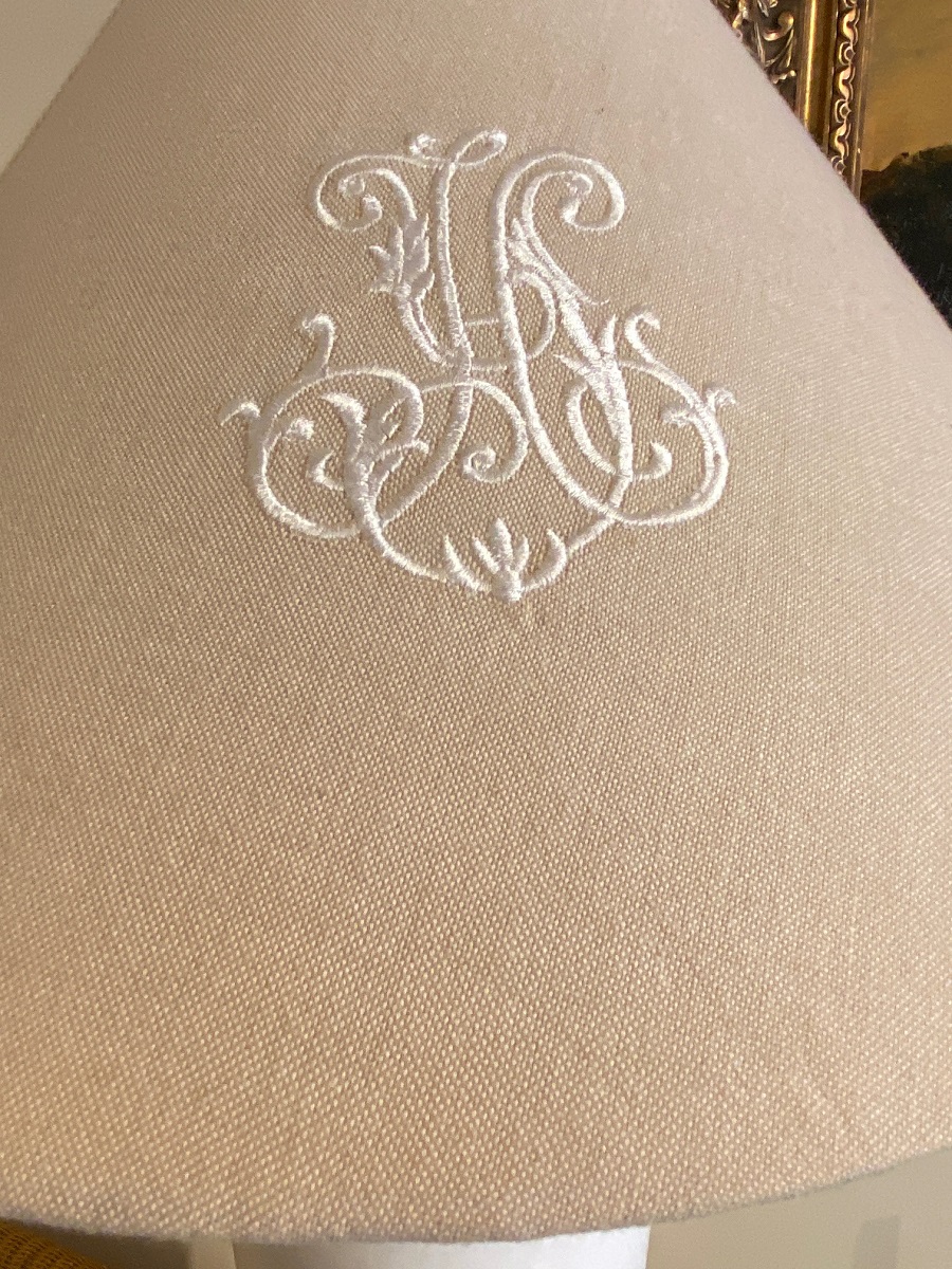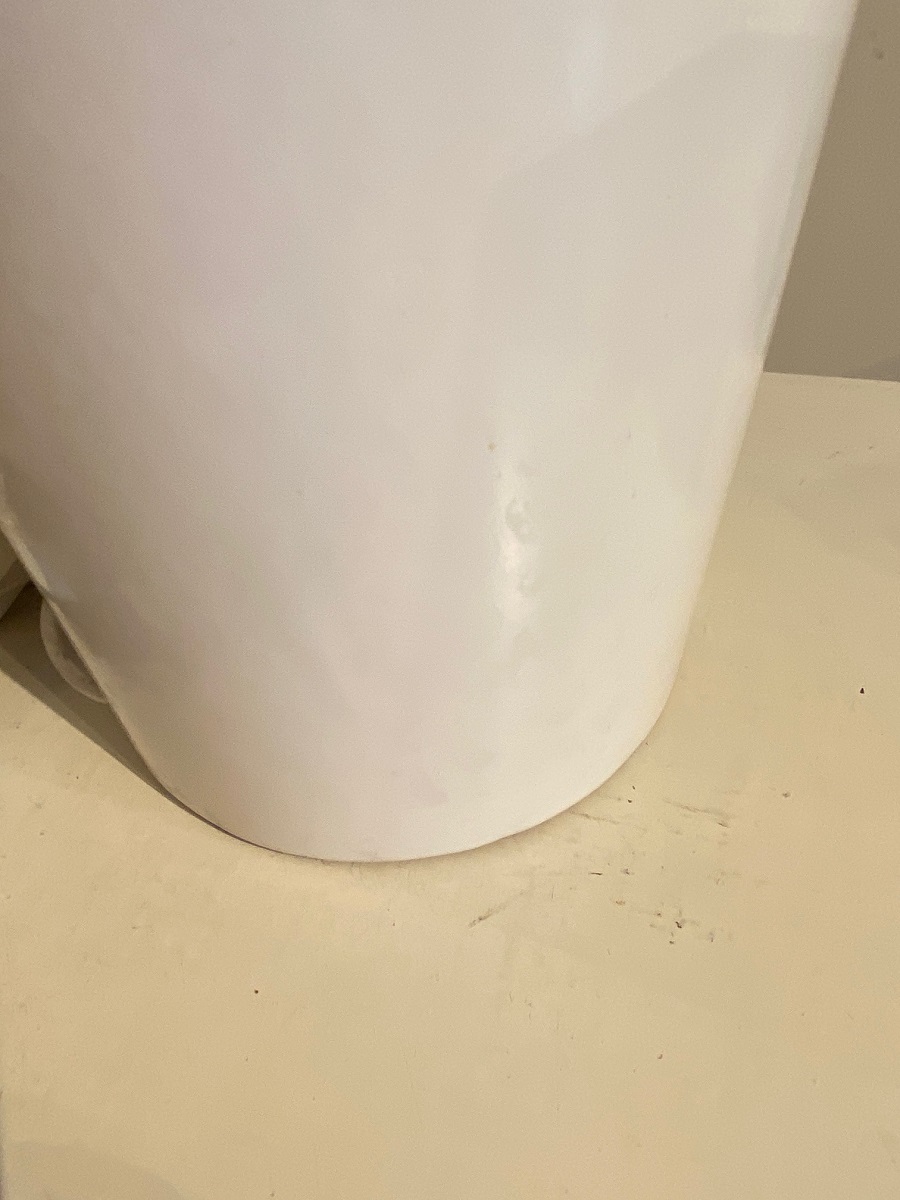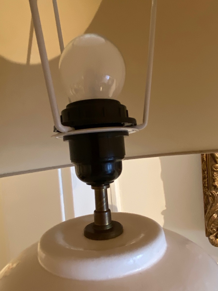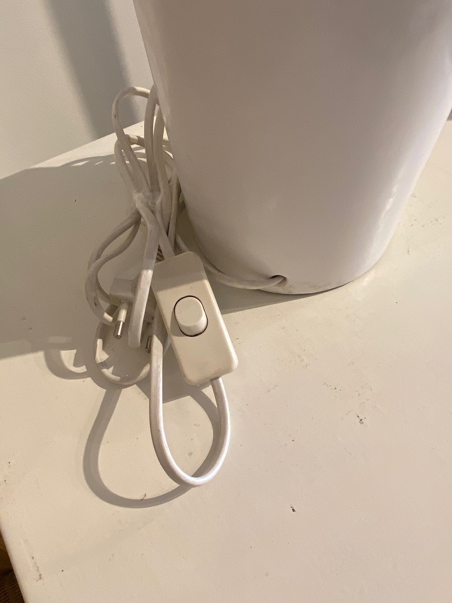 Design lamp. Vaasgedeelte : hoogte c.a. 57 cm, diameter c.a. 18 cm. Met kap: hoogte c.a. 83 cm, diameter c.a. 45,5 cm.